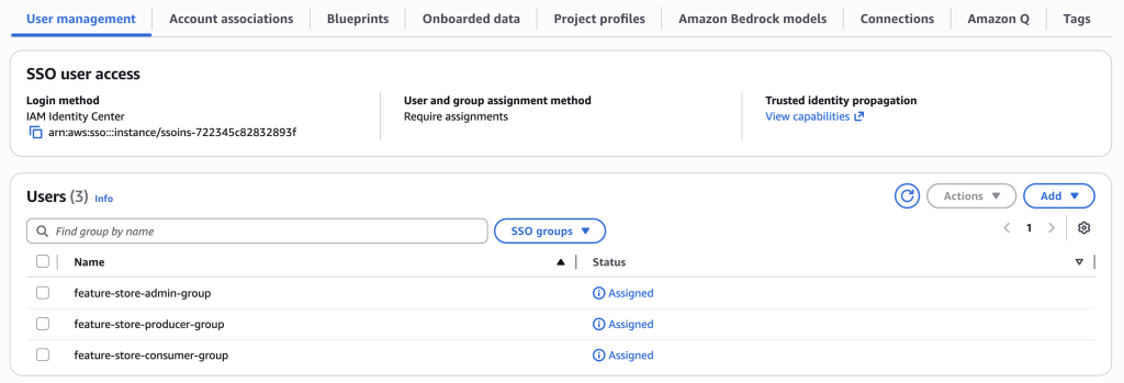 feature-store-admin-group(for admin)feature-store-producer-group(for data engineering teams)feature-store-consumer-group(for data science teams)
